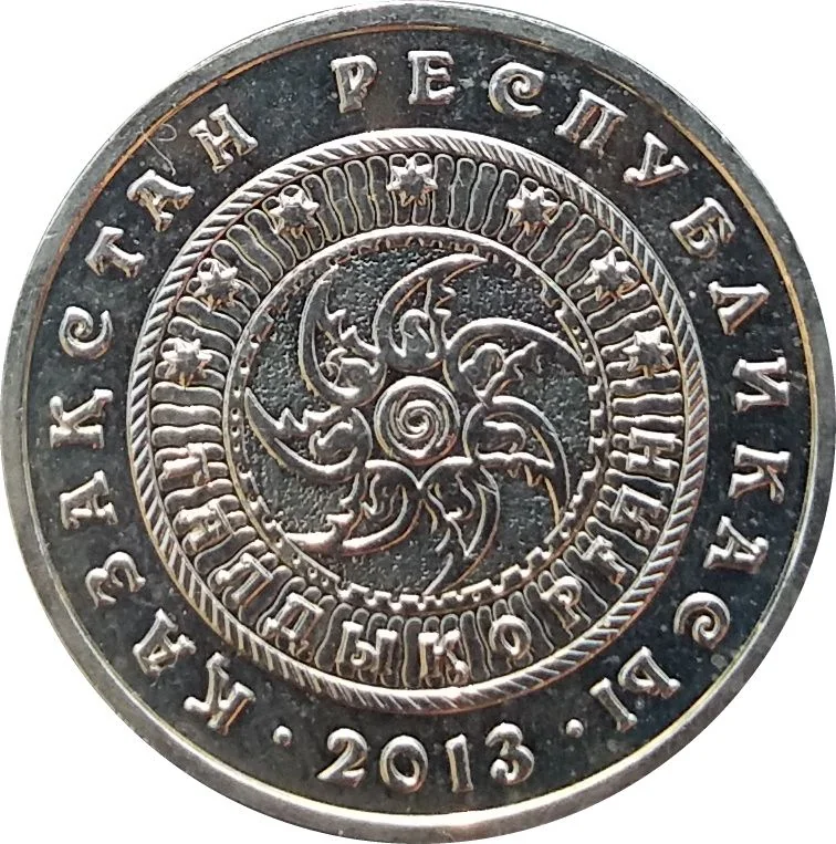 Taldykorgan coat of arms in the centre, with «ҚАЗАҚСТАН РЕСПУБЛИКАСЫ» and «2013» around the edge, separated by dots.