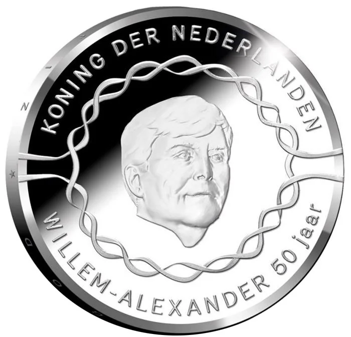 King Willem-Alexander's profile facing right, encircled by design and text.