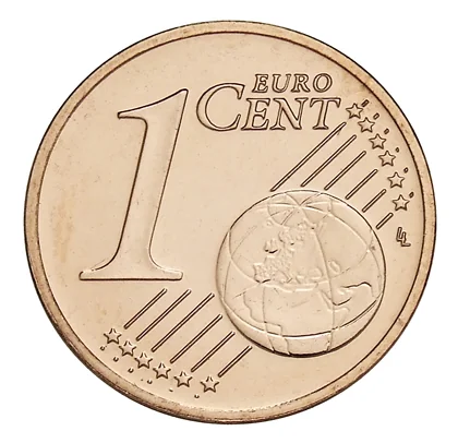 The reverse depicts a globe showing Europe, Africa, and Asia, with the numeral 1 and the inscription EURO CENT.