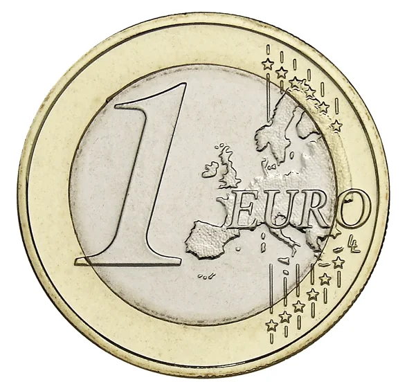 The reverse depicts a geographical image of Europe with the numeral 1 and the inscription EURO.