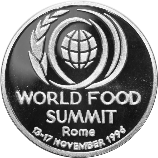 FAO emblem of Earth encircled by wheat, with "WORLD FOOD SUMMIT Rome" above "13 - 17 NOVEMBER 1996".