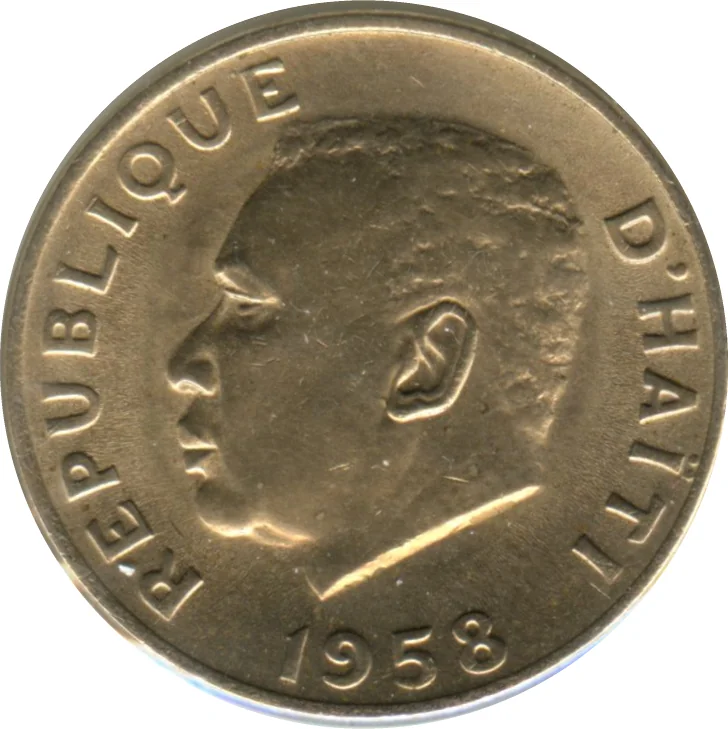 In 1958, Haiti's currency situation was characterized by instability and a reliance on the U.S. dollar, reflecting the nation's broader economic fragility under the authoritarian rule of President François "Papa Doc" Duvalier, who had taken power the previous year. The official currency was the Haitian gourde (HTG), which was pegged to the U.S. dollar at a fixed rate of 5 gourdes to 1 dollar, a parity established in 1912. However, this official peg often masked economic realities, as the country's chronic trade deficits, declining agricultural exports (particularly coffee), and political uncertainty created persistent pressure on the currency's value.