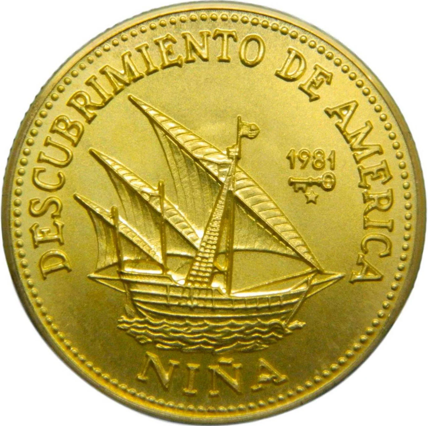 "Niña," date and mintmark upper right, vessel name below.