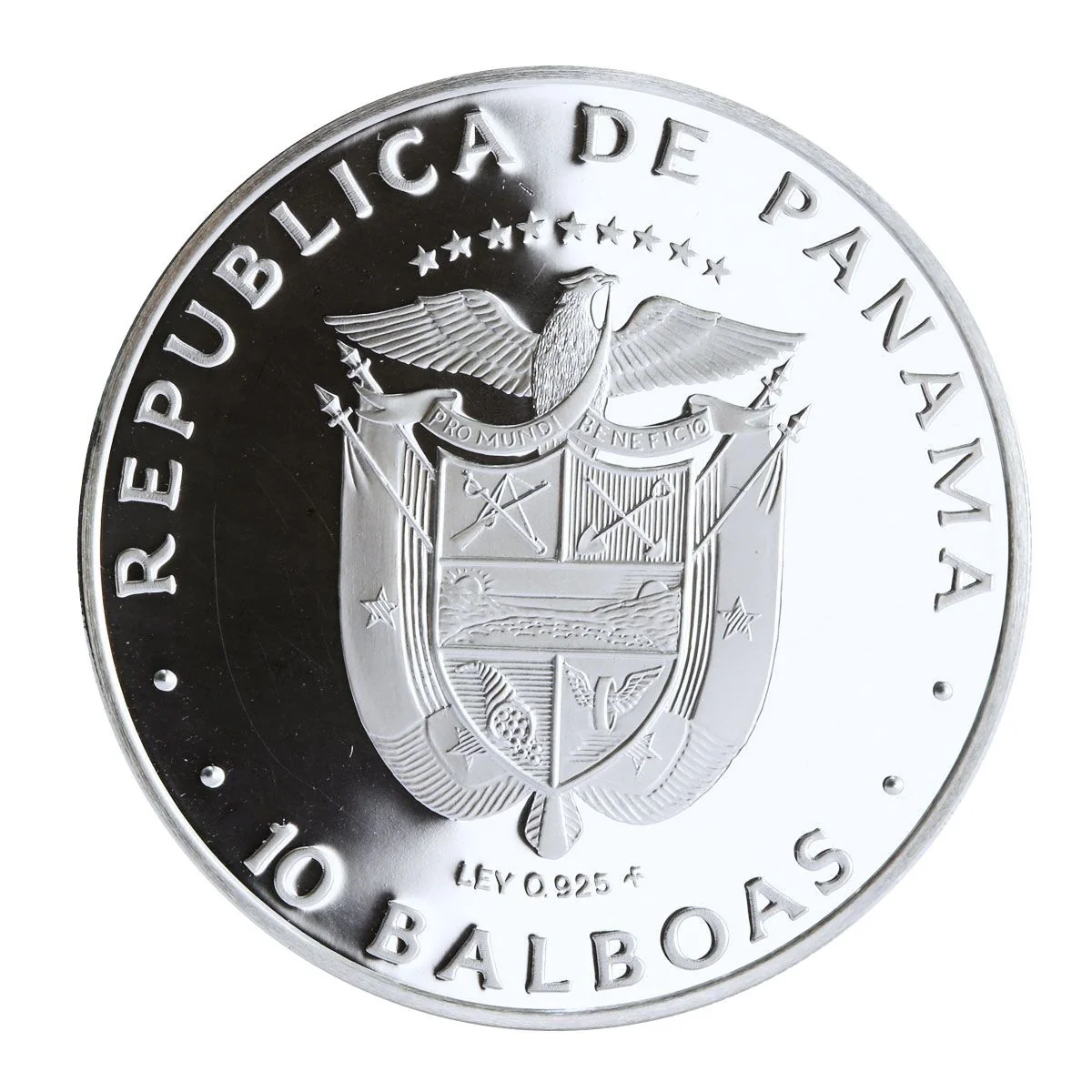 Panama's arms under nine stars, country name above, fineness and value below.
