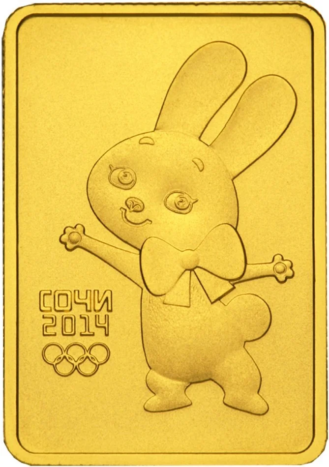 The Hare mascot of the 2014 Sochi Winter Olympics, with "SOCHI" and "2014" below it, above the five Olympic rings.