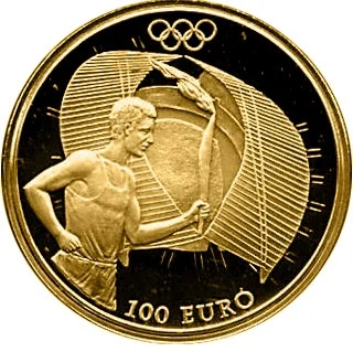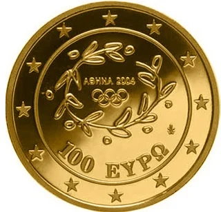 The 2004 Athens Summer Olympics 100 Euro coin logo.