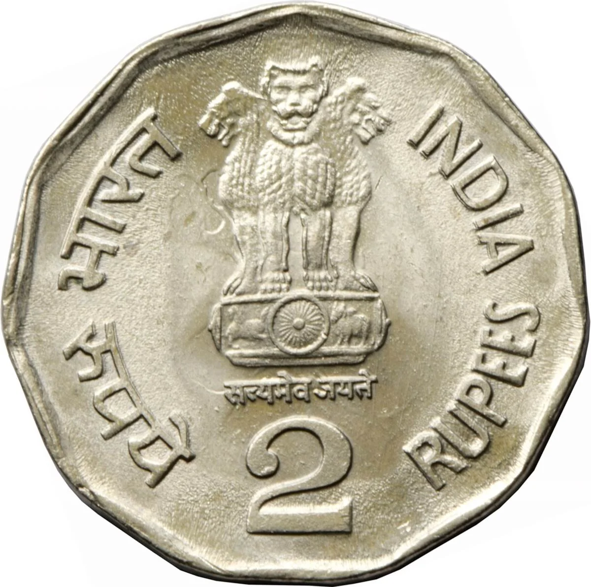 Sant Tukaram seated with instruments. Mintmarks: ♦ (Mumbai), none (Calcutta), ° (Noida).