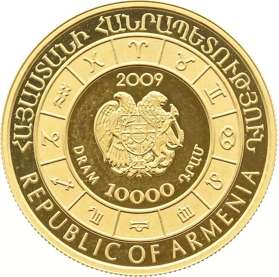 National coat of arms with date above, denomination and Zodiac symbols below.
