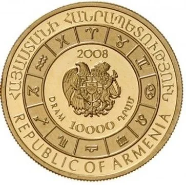 National coat of arms with date above, denomination and Zodiac symbols below.
