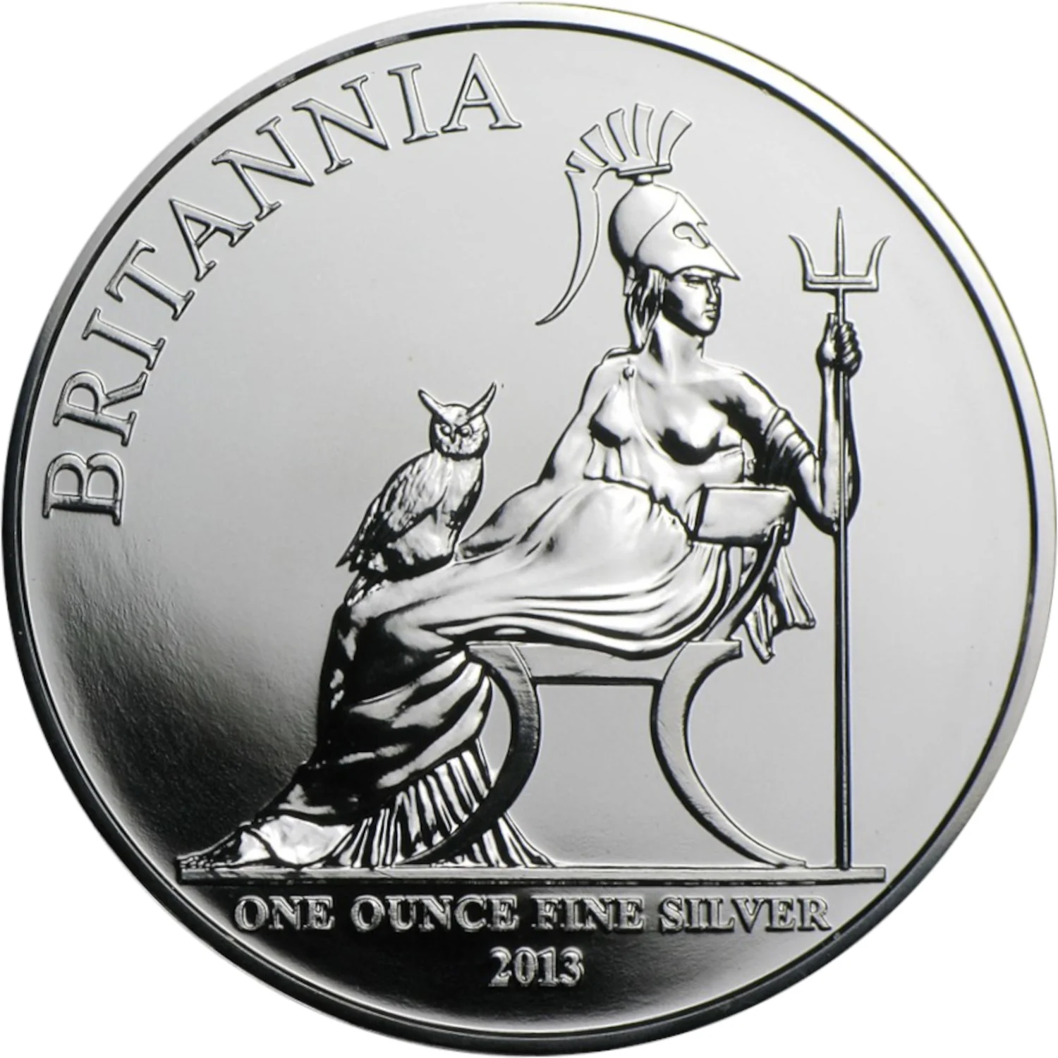Britannia seated with trident and owl, legend and date below.
