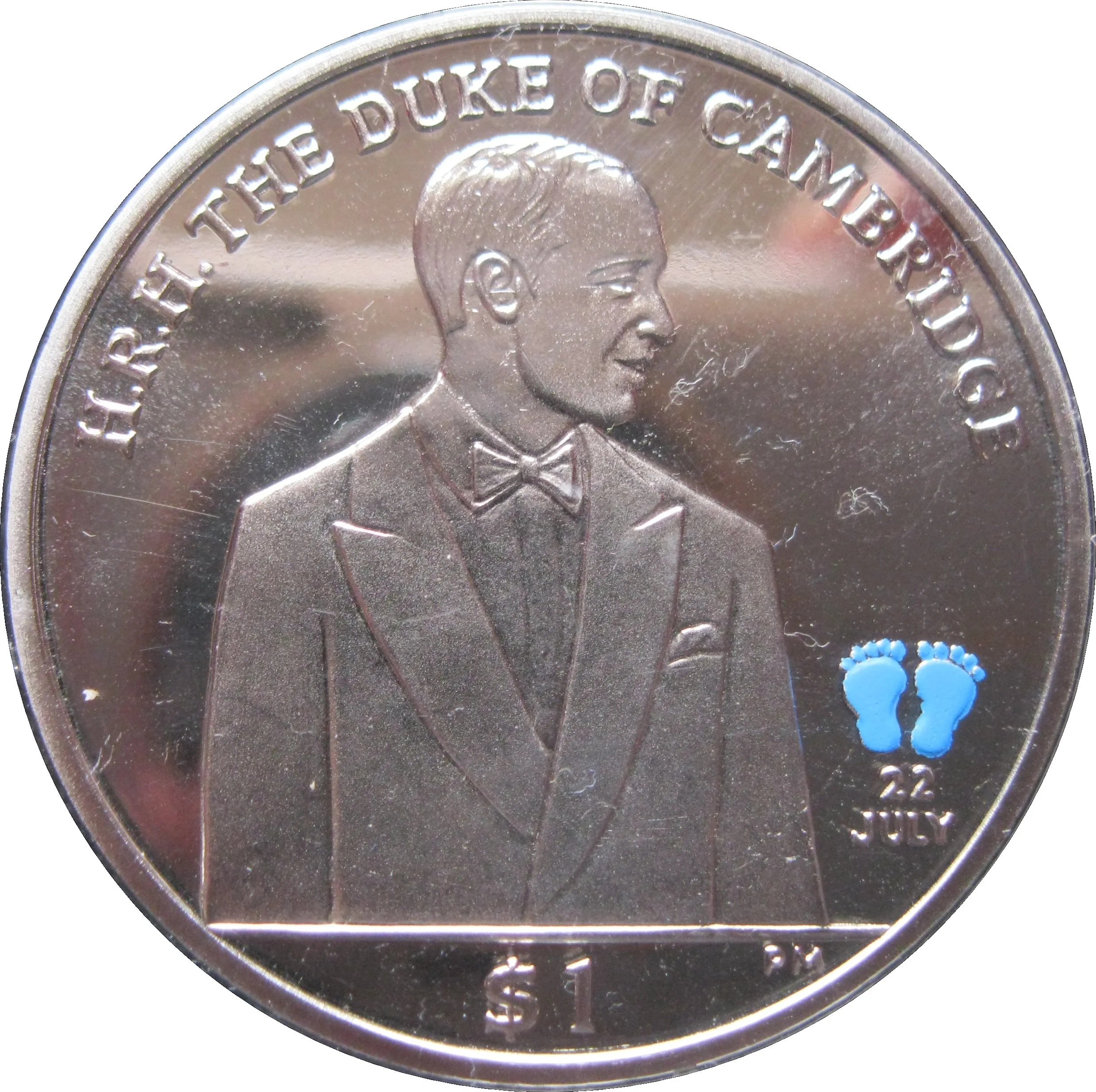 Image of The Duke of Cambridge with Prince George's birth date and tiny blue footprints.