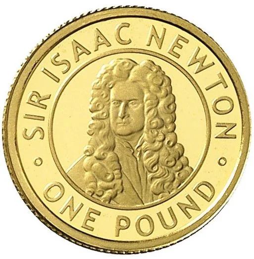 Newton bust. Inscription above, denomination below.