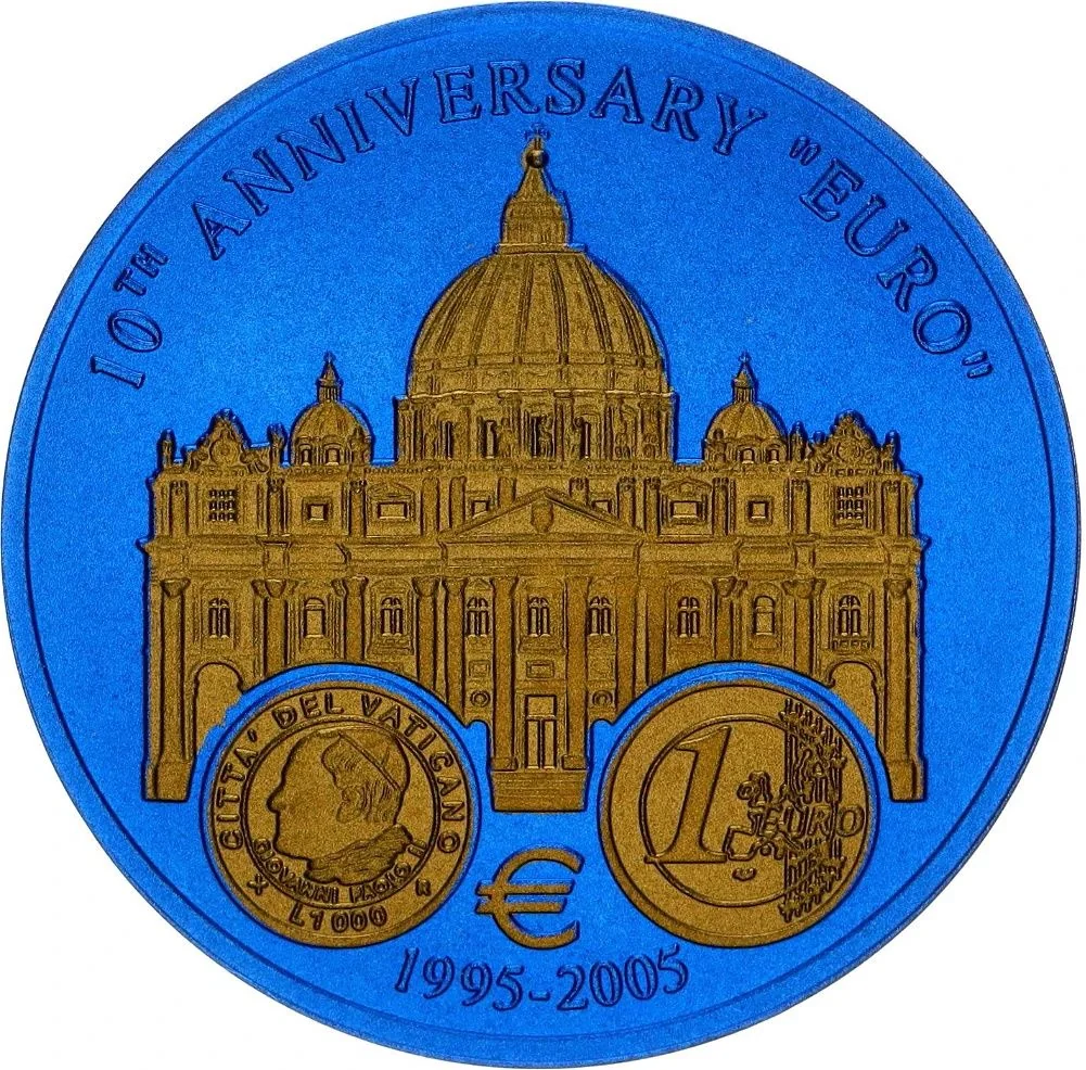 Saint Peter's Basilica on Vatican 1000 Lire (KM#337) and 1 Euro coin reverses.