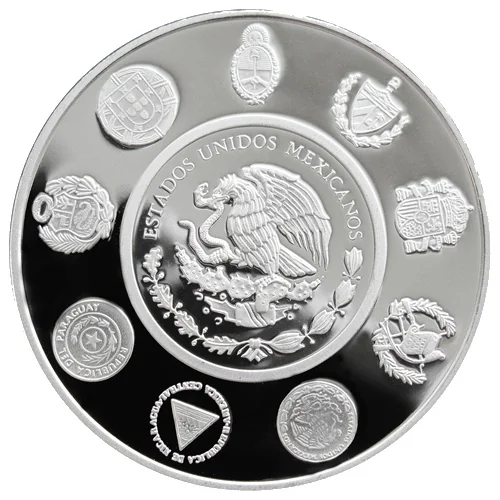 Mexico's coat of arms surrounded by those of Argentina, Cuba, Spain, Guatemala, Nicaragua, Paraguay, Peru, and Portugal.