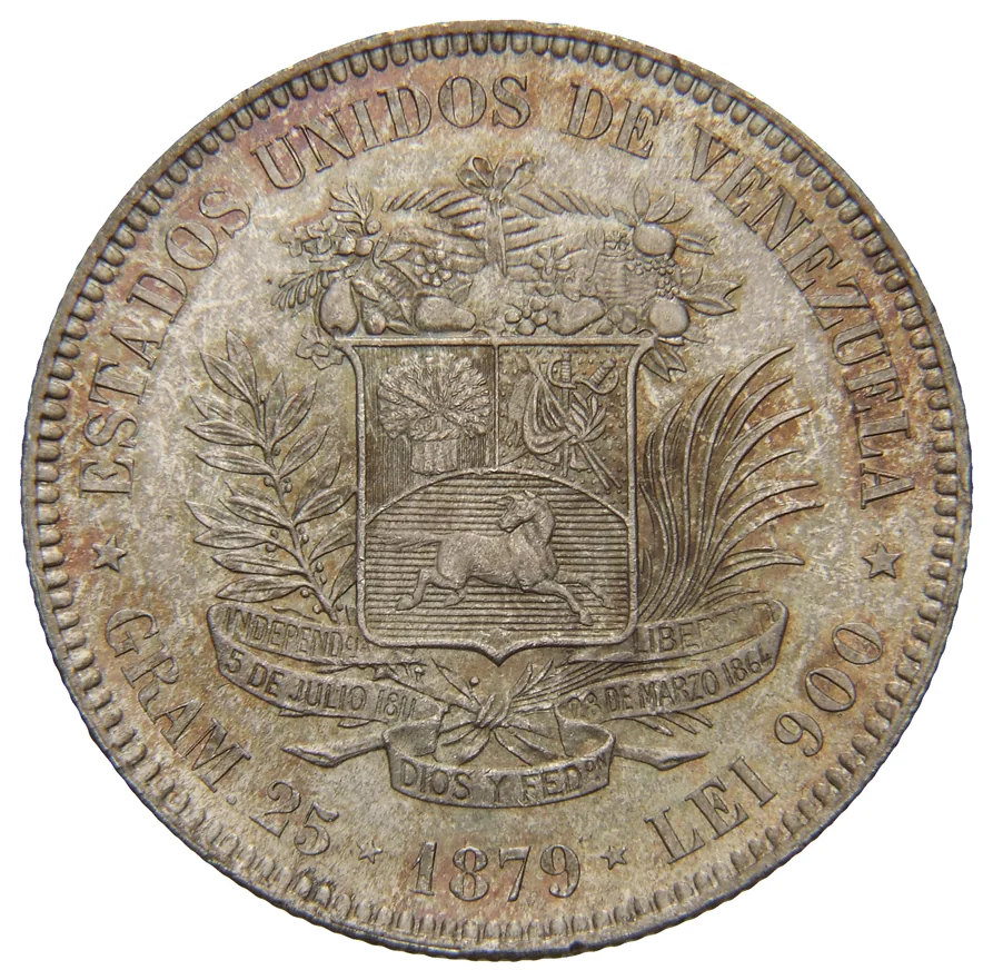 In 1879, Venezuela was in the final stages of a profound monetary reform initiated by President Antonio Guzmán Blanco, known as the "Ilustre Americano." The preceding decades had been marked by financial chaos, with a circulation of diverse and often devalued coinage from various nations, alongside paper money issued by regional caudillos and private banks. This confusing and unstable system hindered commerce, state revenue collection, and economic development, creating a pressing need for a unified national currency.