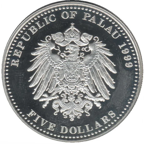 Portrait of Wilhelm II on Prussian 5 Mark coins, 1891-1908.