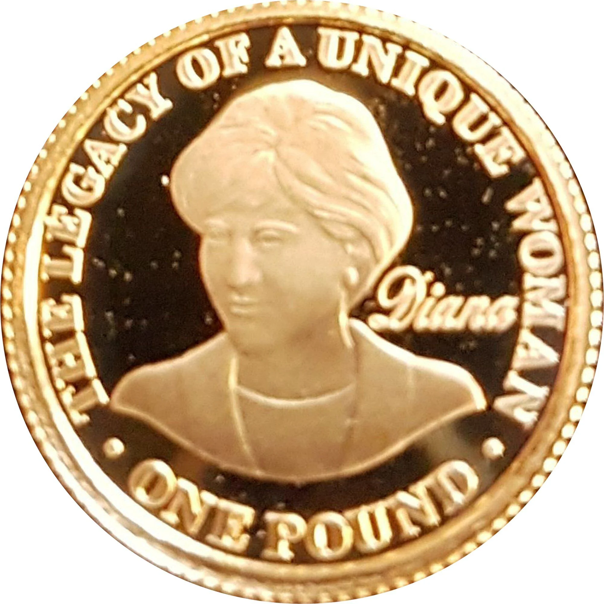 Bust of Princess Diana facing forward, encircled by text with value below.