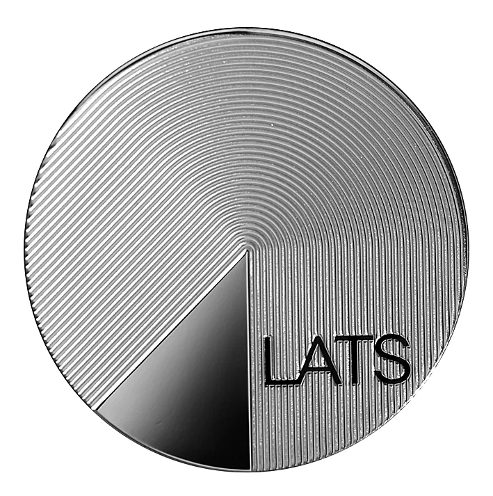 The reverse has an intricate line pattern forming circles, featuring a shiny "1"-shaped sector with "LATS" inscribed to its lower right.