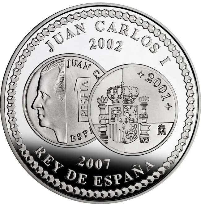 Central obverse and reverse of the 2001 1-peseta coin, the final peseta issue.