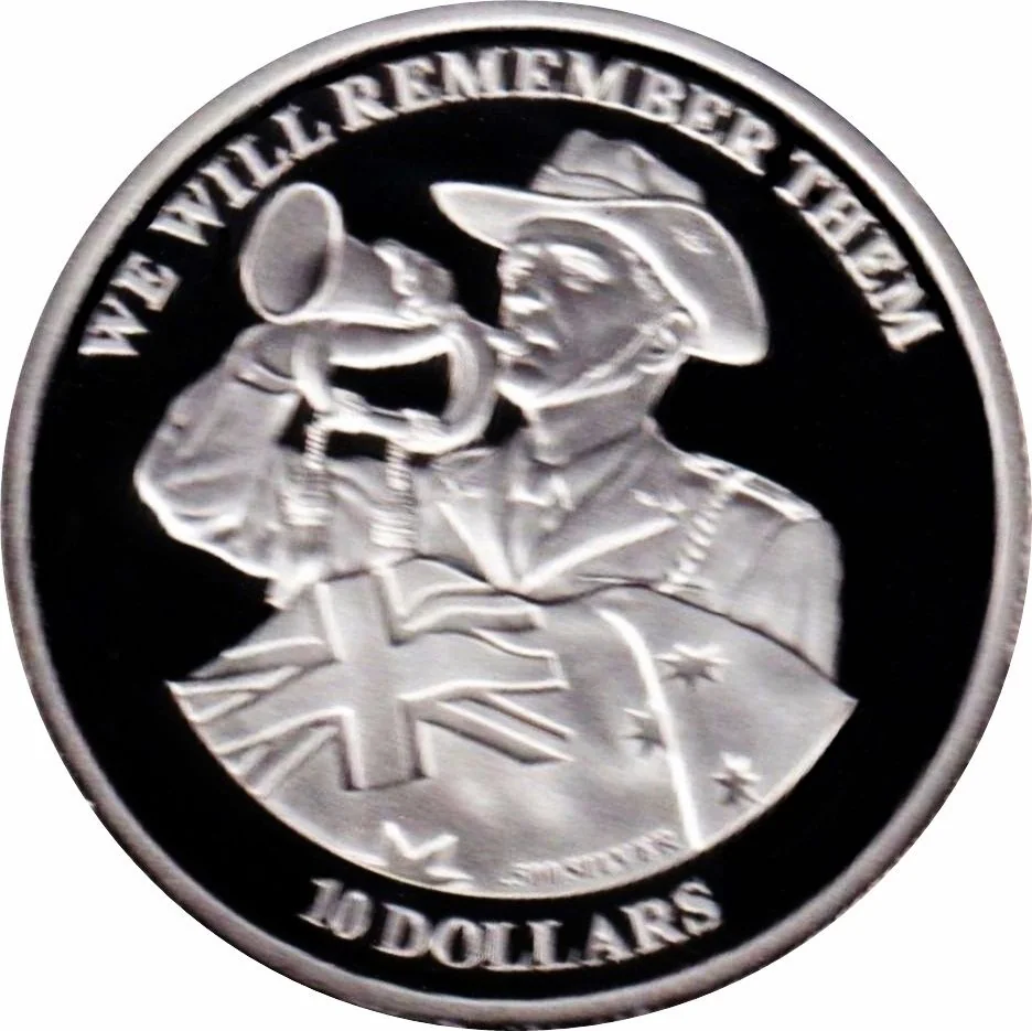 An Australian soldier playing a bugle.