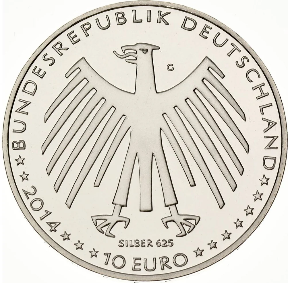 Left-facing German eagle emblem, year, country, face value, and Karlsruhe mintmark (G).