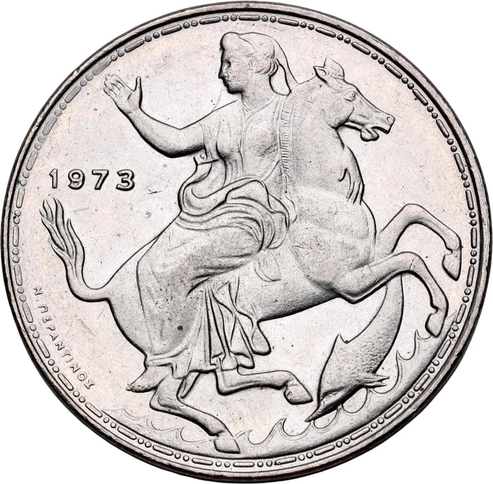 In 1973, Greece's currency situation was defined by the authoritarian rule of the "Regime of the Colonels" and its struggle to control a deteriorating economy. The official currency, the drachma, was under severe pressure due to a combination of internal mismanagement and external shocks. The government of Georgios Papadopoulos, seeking a veneer of economic legitimacy, had pursued rapid industrialization and infrastructure projects fueled by heavy borrowing and loose monetary policy. This led to significant inflationary pressures, which were dramatically exacerbated by the global 1973 oil crisis. As energy costs skyrocketed, Greece's balance of payments worsened, and inflation surged into double digits, eroding purchasing power and creating widespread economic anxiety.