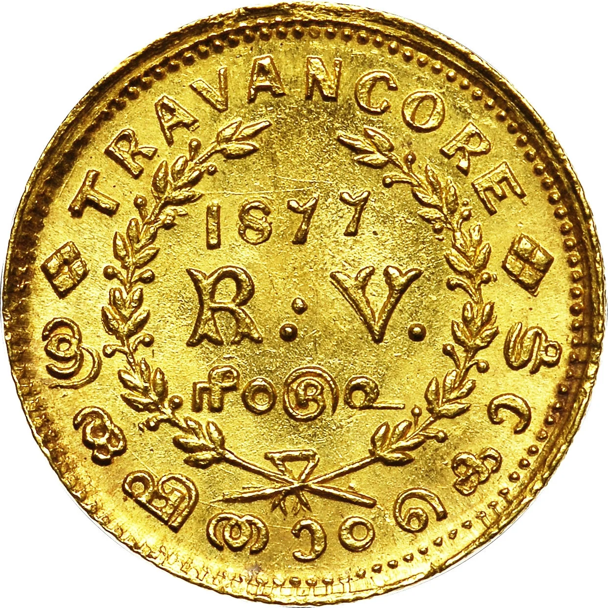 Standard circulation coins from Travancore