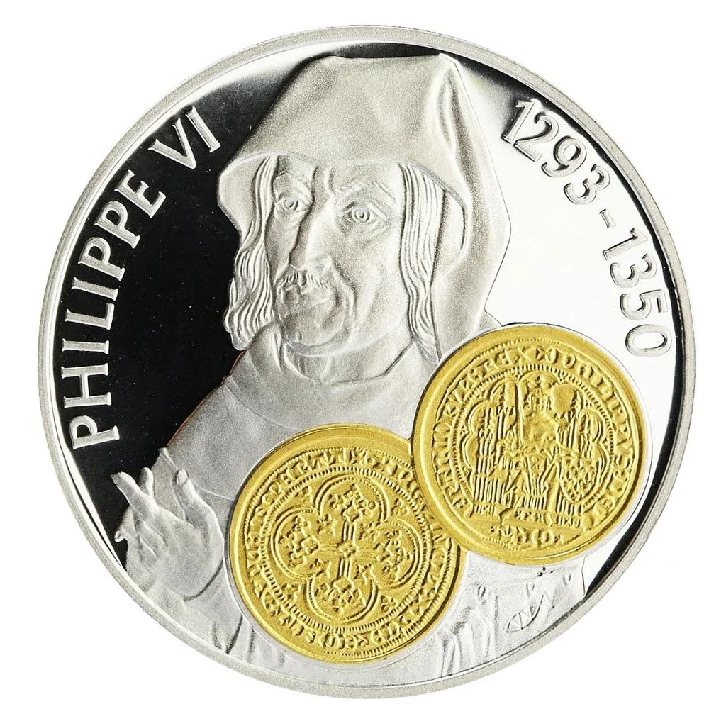 Portrait of Philip VI with the "Écu d'or à la chaise" coin.