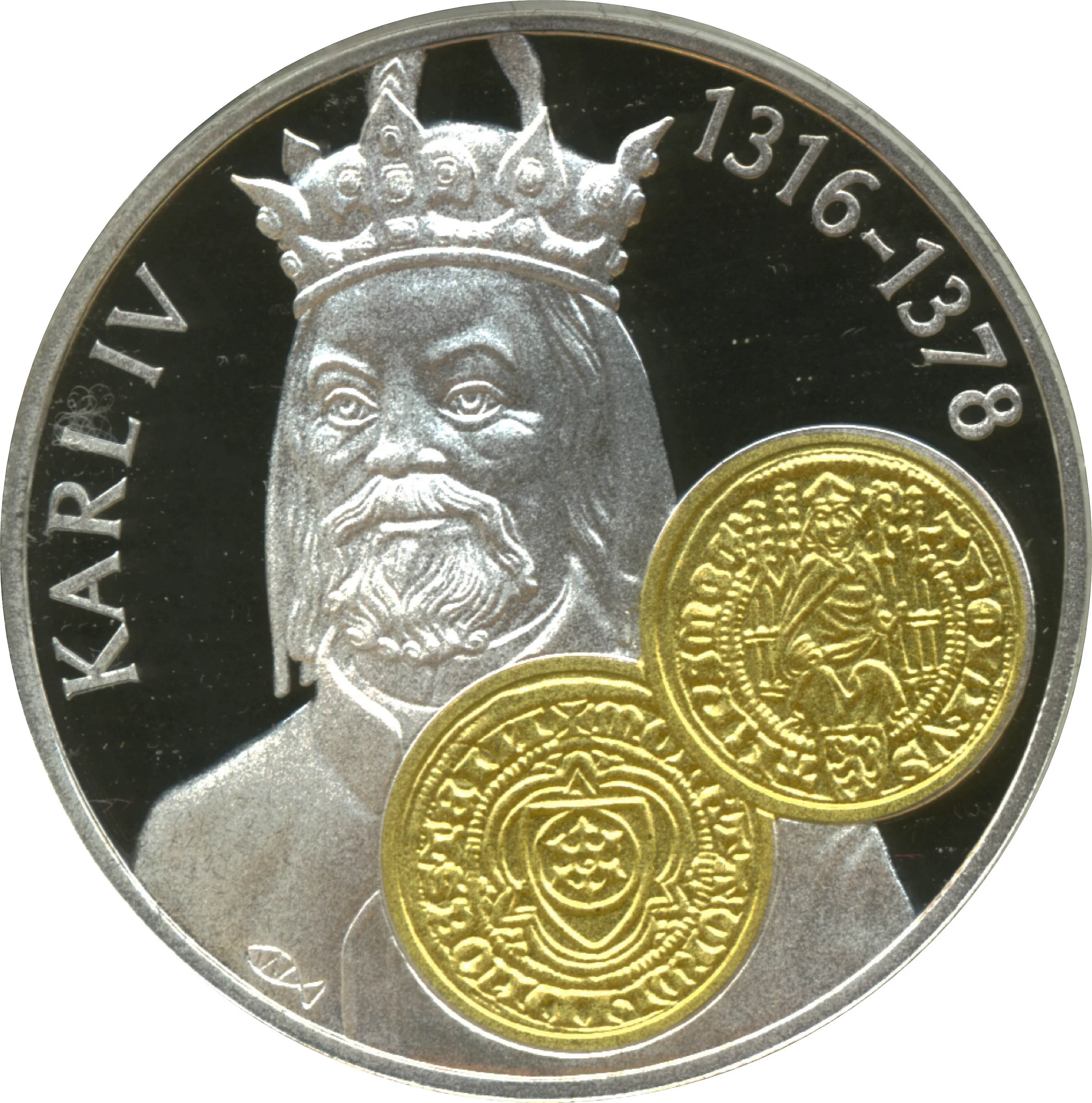 Portrait of Carolus IV with a Rhenish guilder coin.