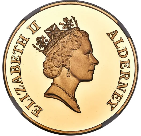 Queen Elizabeth II right-facing bust in George IV State Diadem, surrounded by legend.