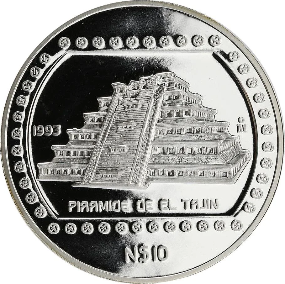 Pyramid of El Tajín within a circle. Date, mint, and name encircle it. Value below.