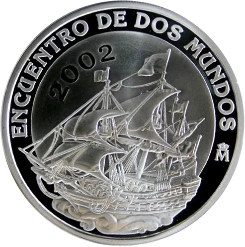 16th century galleon, engraved by José Espinós Gisbert (1877–1956), later an auxiliary coin engraver at the Casa de la Moneda from 1924.