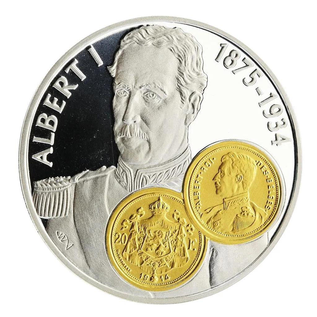 Portrait of Albert I on a Belgian 20 Franc gold coin from 1914.