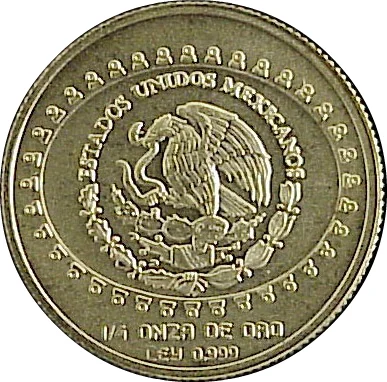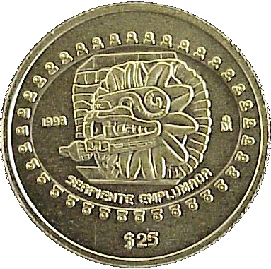 Quetzalcóatl within an oval, surrounded by year, mint, and legend. Value below.