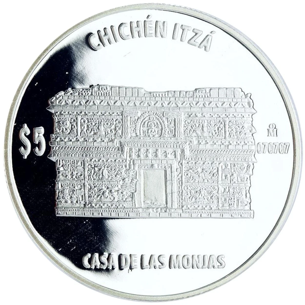 Casa de las Monjas stone house. Top/bottom legend, value, mint mark, and "070707" date.