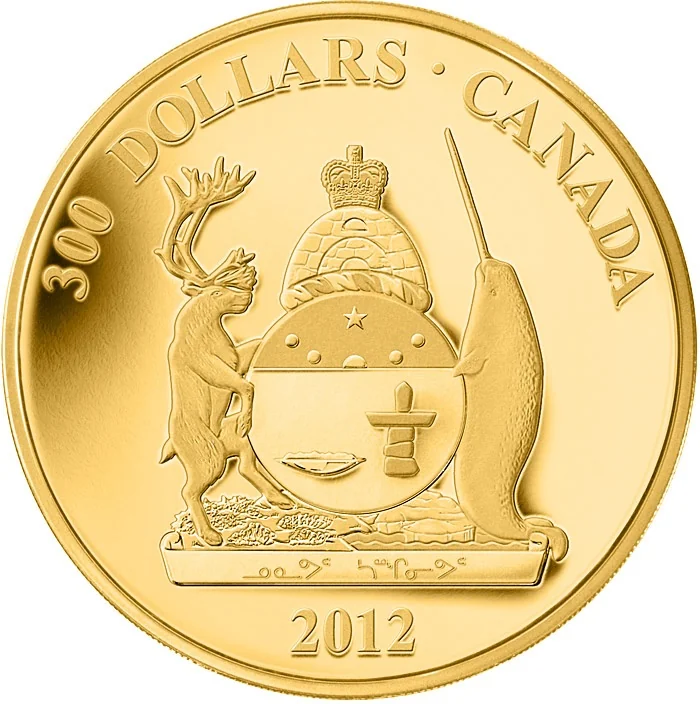 Nunavut's Coat of Arms, Canada's youngest, was granted in 1999. Designed by Andrew Qappik with Inuit elders and heraldic authorities, it blends Inuit symbolism and heraldic tradition. The shield features a survival iglu and the Royal Crown. It is supported by a caribou and narwhal, vital to Inuit life. The Inuktitut motto reads “Nunavut Sanginivut” (Nunavut our strength).