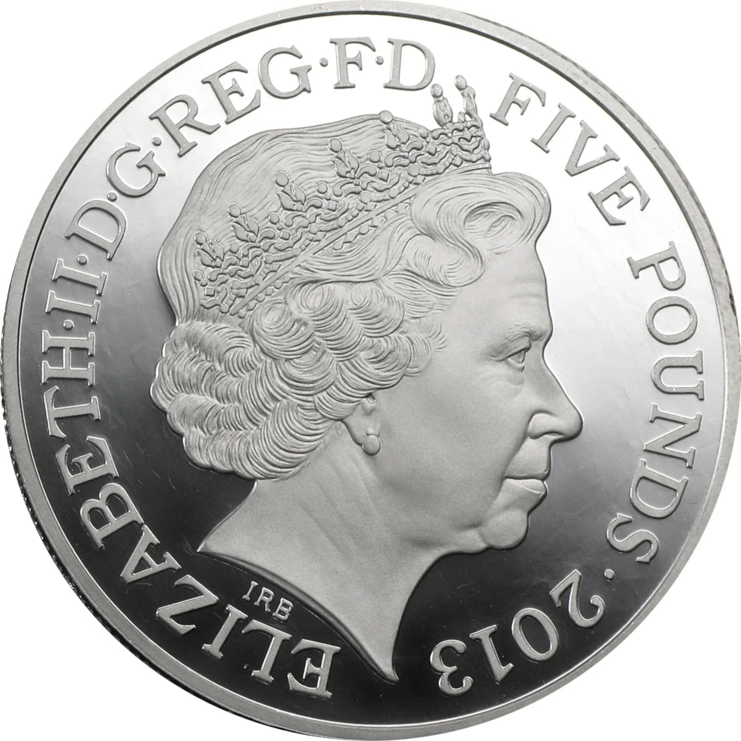 Elizabeth the Second, by the Grace of God, Queen, Defender of the Faith. Five Pounds 2013.