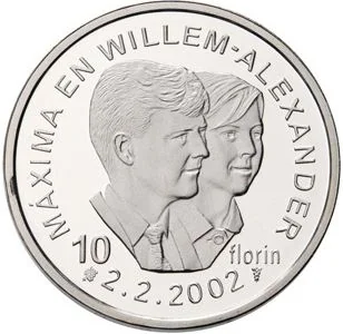 Prince Willem-Alexander and Máxima Zorreguieta portrait, denomination below.