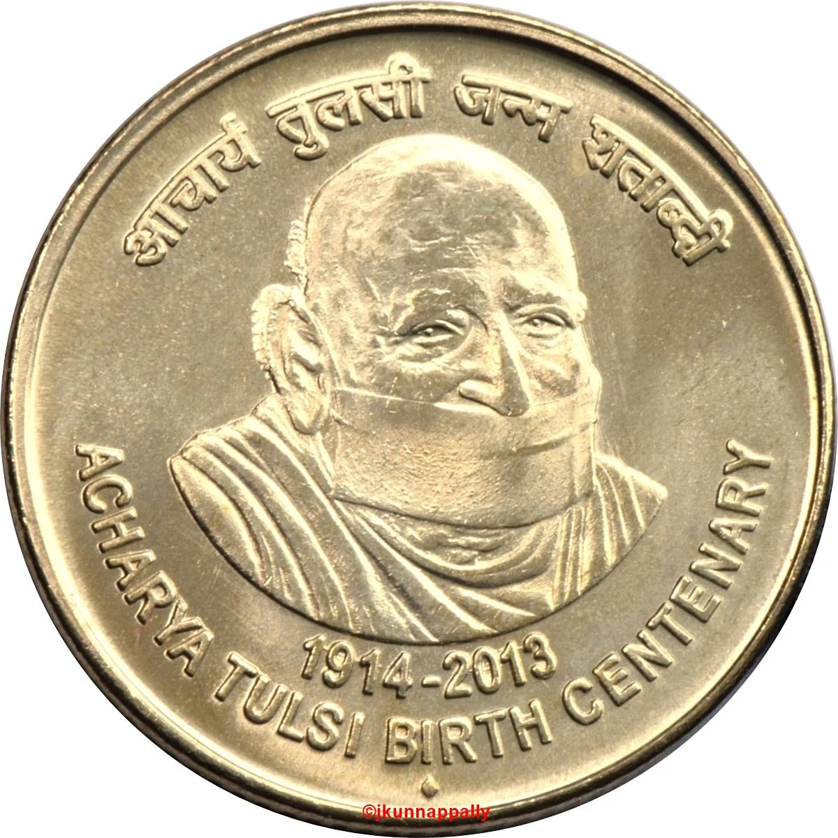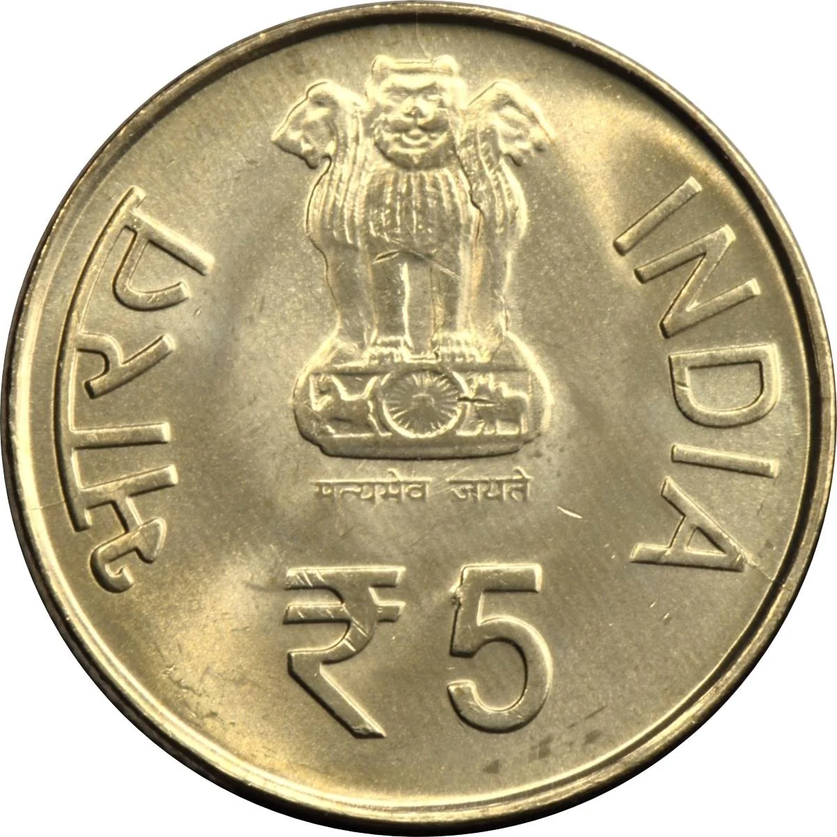 Ashoka Pillar lion capital (fat version) with value beside rupee symbol.