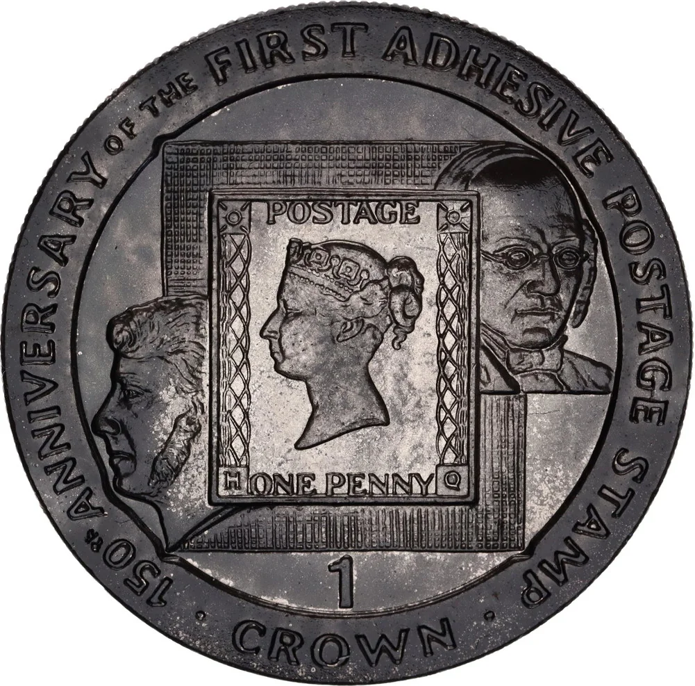 150th ANNIVERSARY of the FIRST ADHESIVE POSTAGE STAMP . CROWN .