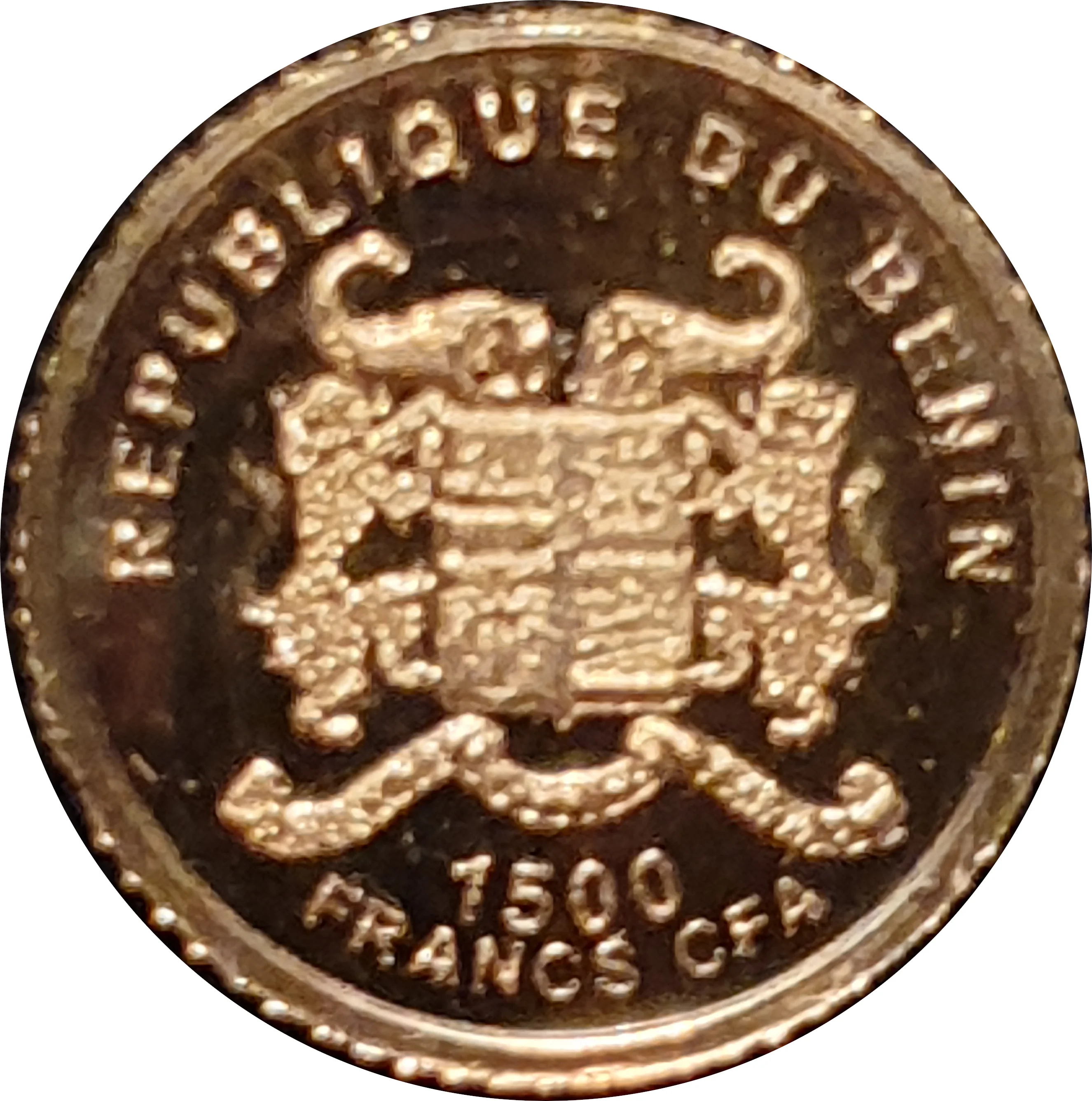 Benin coat of arms, denomination below.