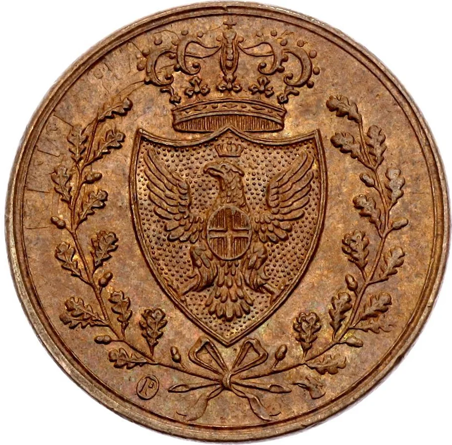 Description: 1 CENTESIMO 1826 within a wreath. Around: CAR. FELIX D. G. REX SARD. CYP. ET HIER. Rosette below.