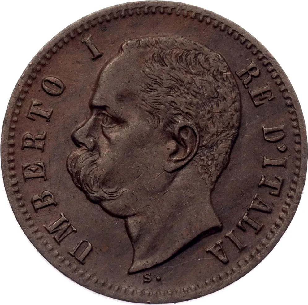 King Umberto I facing left, engraver's initial below.