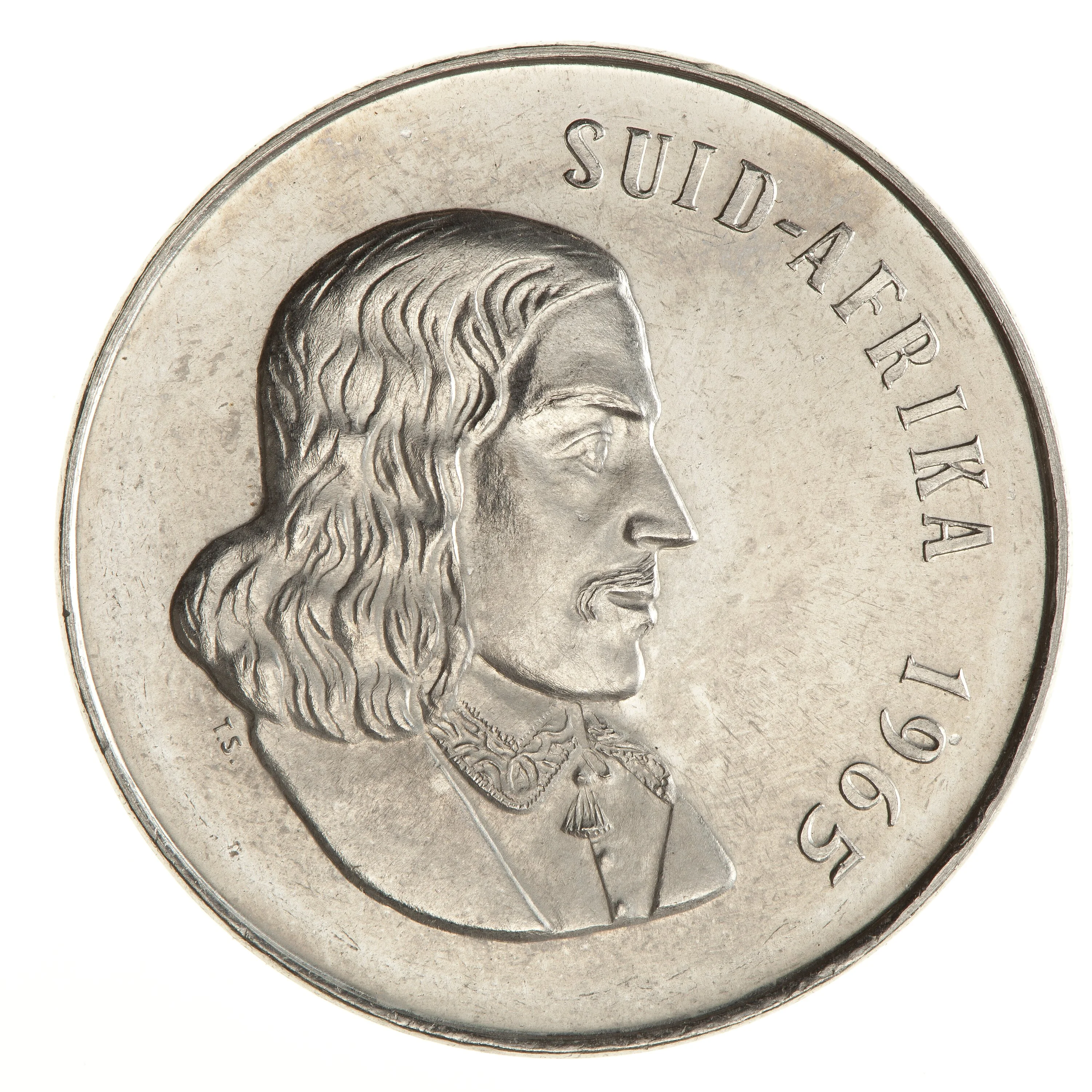 Jan van Riebeeck facing right, Afrikaans text at side.