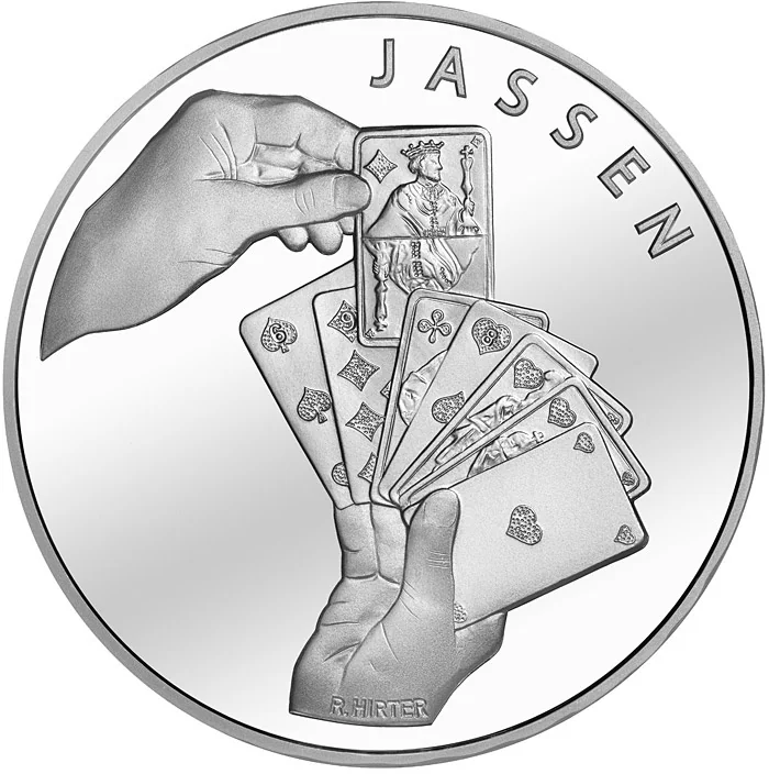 Right hand holding eight cards; left hand selecting the king of diamonds.