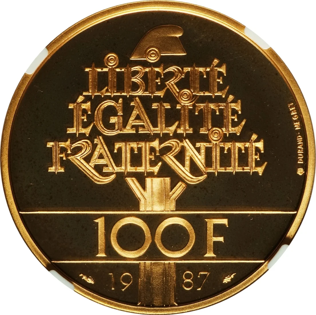 A tree with a Phrygian cap bears the motto "LIBERTÉ ÉGALITÉ FRATERNITÉ". This design, adapted from Michel Durand-Megret, is crossed by a band showing its value.