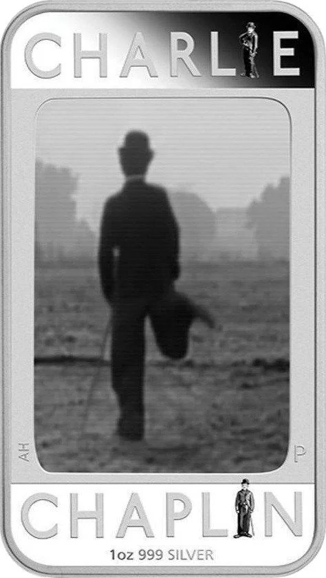 Lenticular coin: the Tramp's iconic walk animated by innovative lenses.