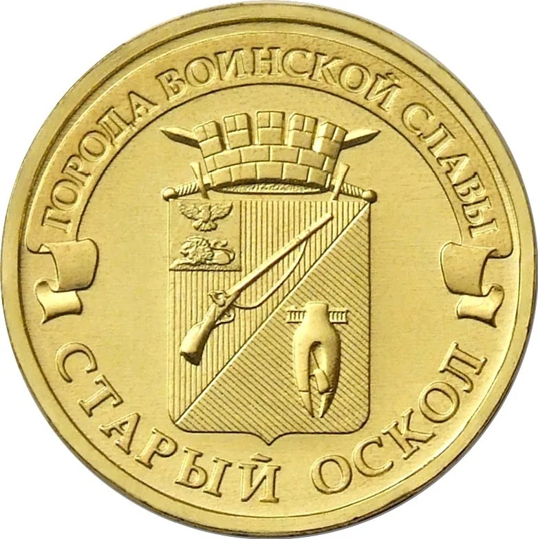 The reverse features Stary Oskol's emblem, encircled by the inscriptions "ГОРОДА ВОИНСКОЙ СЛАВЫ" above and "СТАРЫЙ ОСКОЛ" below.