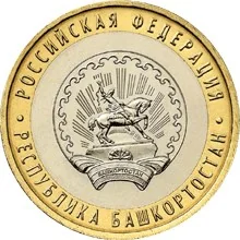 The coat of arms of the Republic of Bashkortostan, encircled by the inscriptions "РОССИЙСКАЯ ФЕДЕРАЦИЯ" above and "РЕСПУБЛИКА БАШКОРТОСТАН" below.