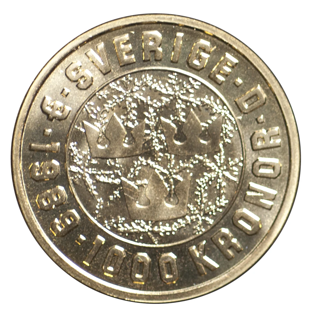 Three ice crystal crowns in a circle. Date, value, and mintmark "ED" in outer legend.